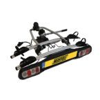 Carries up to 2 bikes (total 30Kg) - Sliding adjustable cradles that suit racing bike to mountain bike tyres - Rapid lock quick release handle allows you to easily fit the carrier to the towball – no tools required - Lockable arms are provided to secure each bike to the support bar - Tilting system – allowing quick access to the boot - Compatible with European 50mm towballs