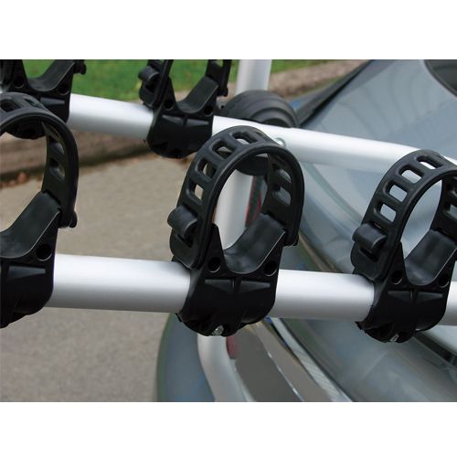 Rear mounted allow 3 bike cycle carrier with easy-fit cradles and straps - Carries up to 3 bikes (total 45kg) - Strong lightweight aluminium alloy frame - Features easy-fit cradles and straps to secure the bikes to the cycle carrier - Fully factory-assembled and ready to use